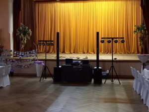 Für größere Veranstaltungen wie z. B. in Sälen oder Festzelten steht zudem ein 18er JBL/Eon-Aktive-Subwoofer als Bassverstärker zur Verfügung. Daneben sind für Beleuchtungszwecke zwei Beleuchtungsanlagen mit jeweils 4 Scheinwerfern/ Strahlern und zwei moderne LED-Lichtanlagen mit wechselnden Lichteffekten vorhanden.